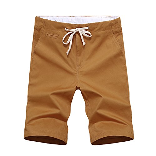 Men's Summer Plain Flat Front Elastic Waist Casual Chino Shorts Solid Color Coffee UK 3XL (Manufacturer Size: Asian 5XL)