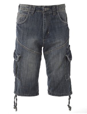 Mens Tokyo Laundry Block Denim Cargo Shorts Mid Blue Wash Size S