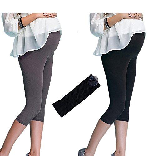 Mija - Set of 3: 2 pairs of maternity 3/4 cropped leggings + waist extender 7202 (14, Black + Beige)