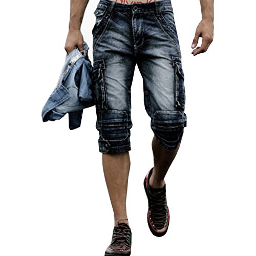 Newfacelook Mens Combat Summer Causal Cargo Jeans Cotton Denim Bermuda Shorts