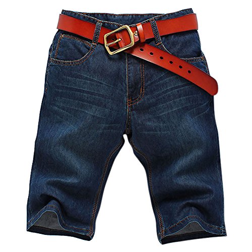OCHENTA Men's Plus Size Slim Fit Short Jeans Dark Blue-38
