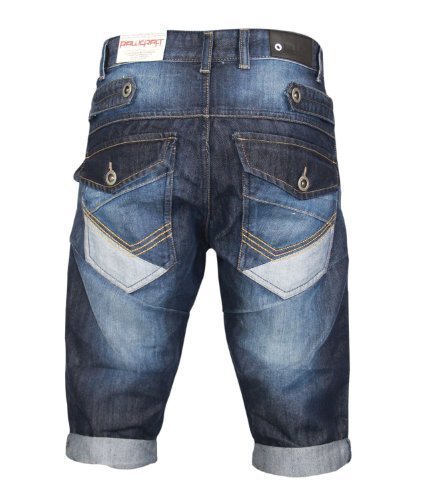 Rawcraft Men Cargo Combat Button Fly Faded Rollup Designer Denim Jean Shorts